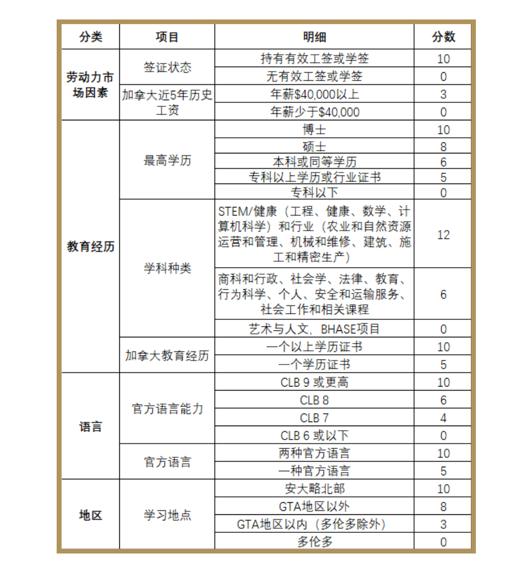 · 硕士毕业生通道(Master graduate stream):过去2年内,在安大略省大学完成至少一年全日制硕士学位课程并取得毕业证明。